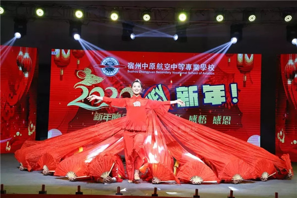 宿州中原航空中等专业学校首届新年晚会如期举行,众多精彩节目亮相,惊艳全场。喜庆洋洋的音乐声、热情的舞动、独具匠心的设计,带给观众不一样的视觉冲击和艺术感受。