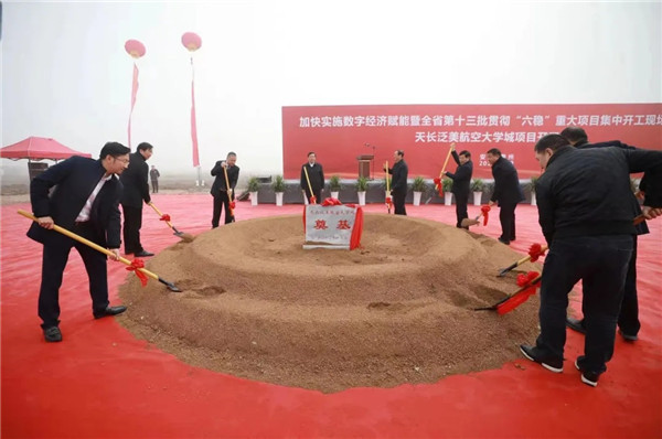最后,滁州市委副书记、市长许继伟宣布泛美天长航空大学城等全市“六稳”重大项目正式开工,参加开工仪式的领导和嘉宾共同挥锹为项目进行了奠基。