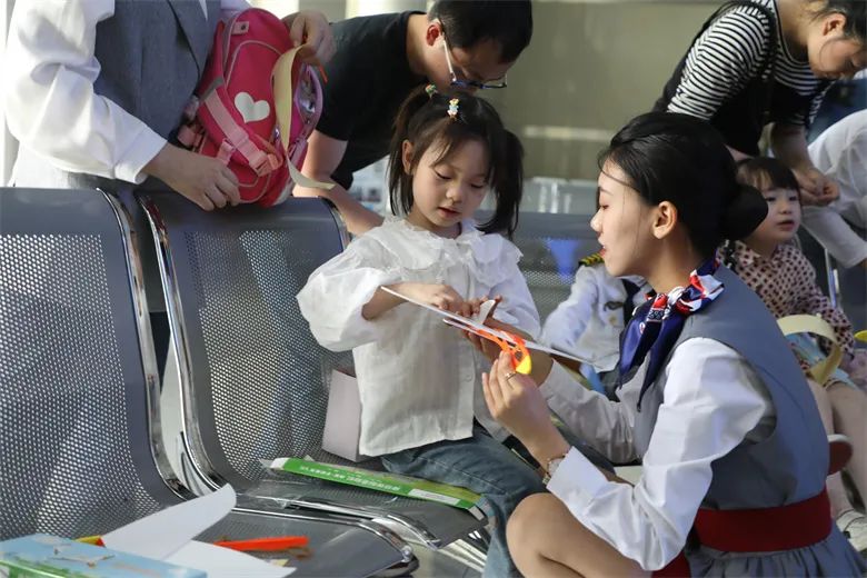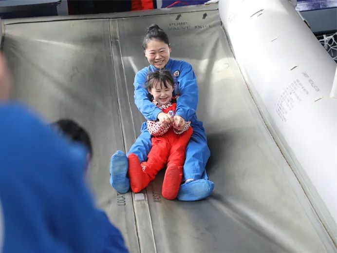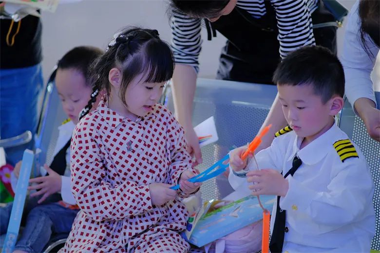 在活动现场,孩子们观看了无人机特技表演,并在家长的引导下自己动手组装了飞机。值得一提的是,在模拟乘坐飞机的过程中,孩子们还体验了陆地撤离的过程,在面对这个大型“滑梯”的时候,孩子们都异常兴奋,充满了欢声笑语。