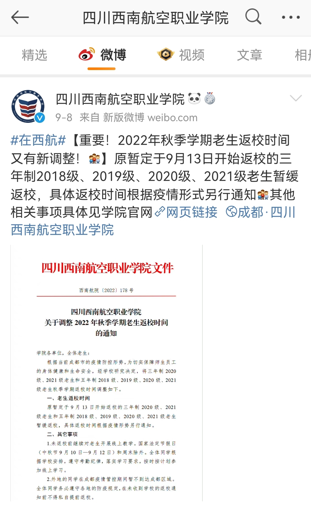 四川西南航空职业学院:整体部署高效落实全面守护