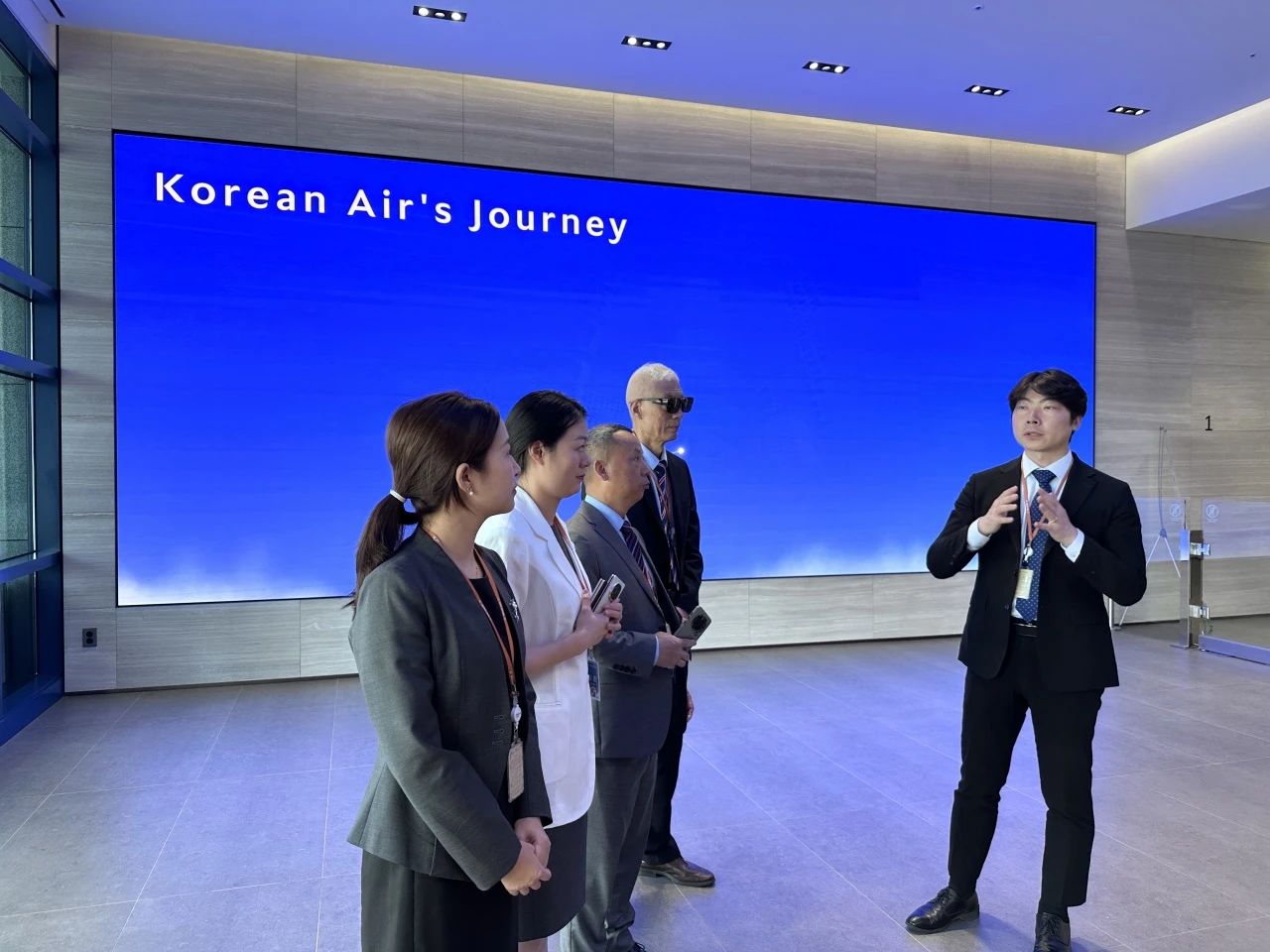 签约仪式结束后,泛美教育集团代表团一行前往参观了与韩国航空大学同属一个财团的大韩航空,近距离感受了其总部先进的核心运营环境,深入了解了世界级航空企业的管理理念及企业文化等。在参观中,双方围绕航空产业实践与教育融合模式进行深入研讨,探索产学研协同创新的可行路径,尤其探讨了共建航空实训基地、探索定制化人才培养项目、开发基于真实岗位需求的实践性课程体系等产教融合方向,为未来合作注入行业前沿动能。