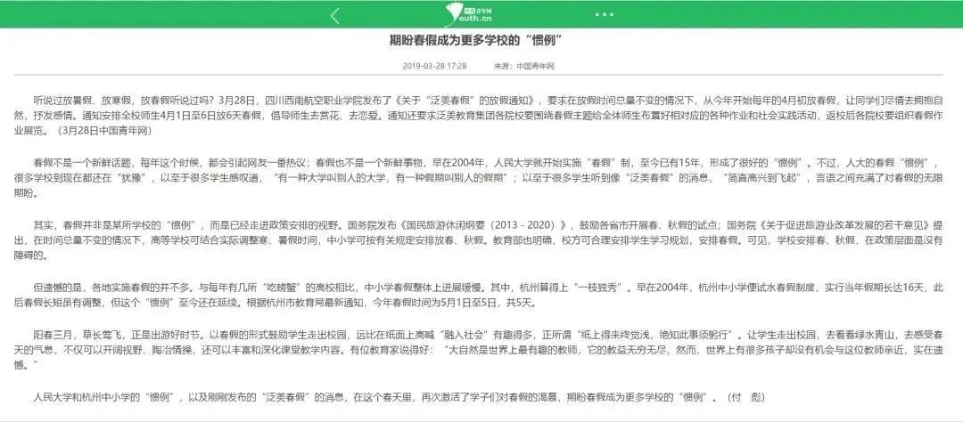 02#中国青年网评论:期盼春假成为更多学校“惯例”