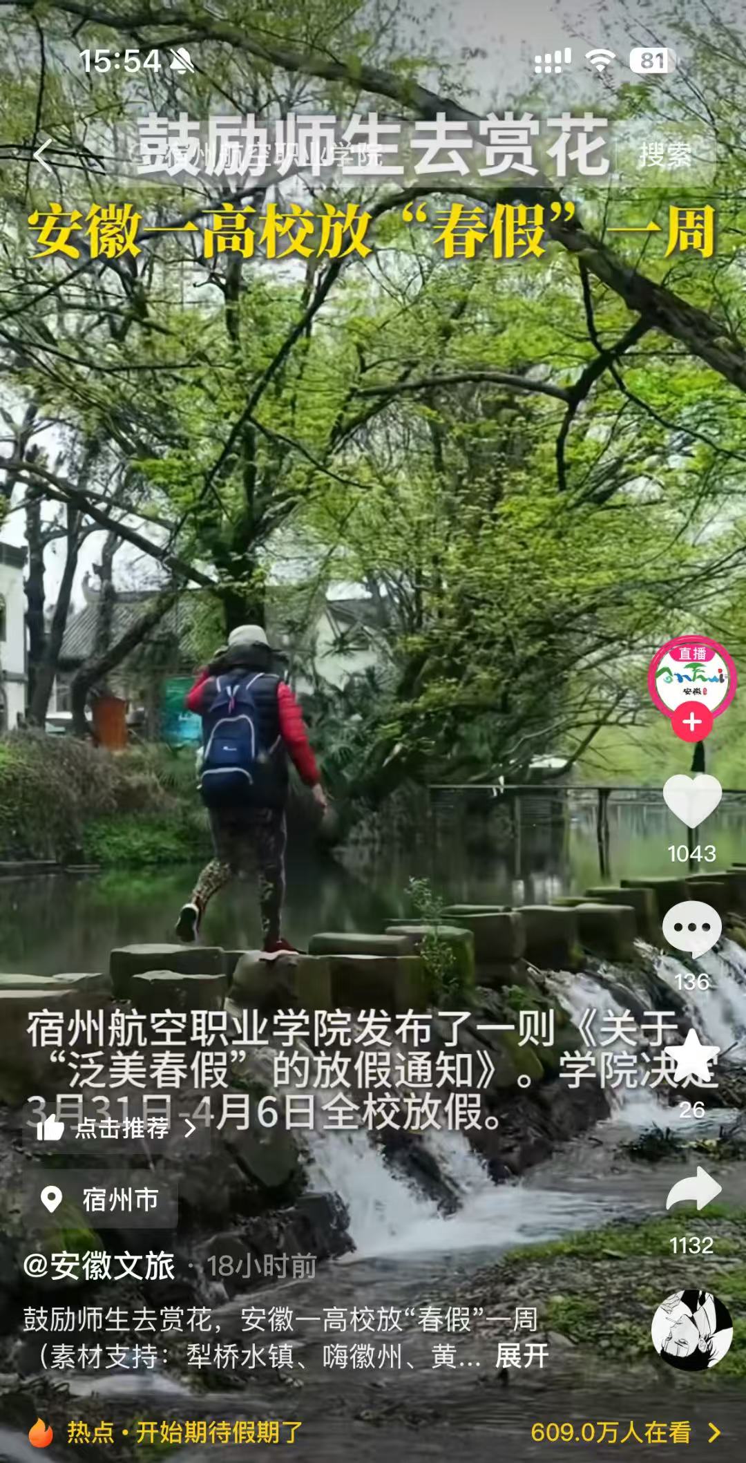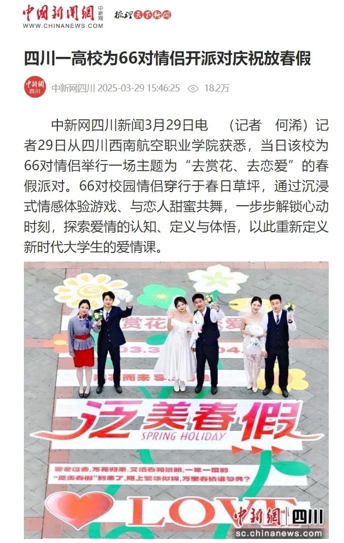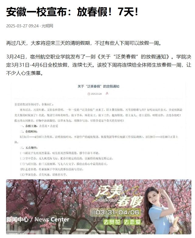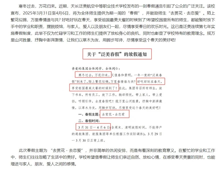 “学校放春假,让大家去游玩,去恋爱”的消息获央视新闻周刊的关注,央视主持人白岩松硬核喊话,“春光正好,众多学校是不是也抄抄这份作业”,呼吁其他学校“抄作业”。