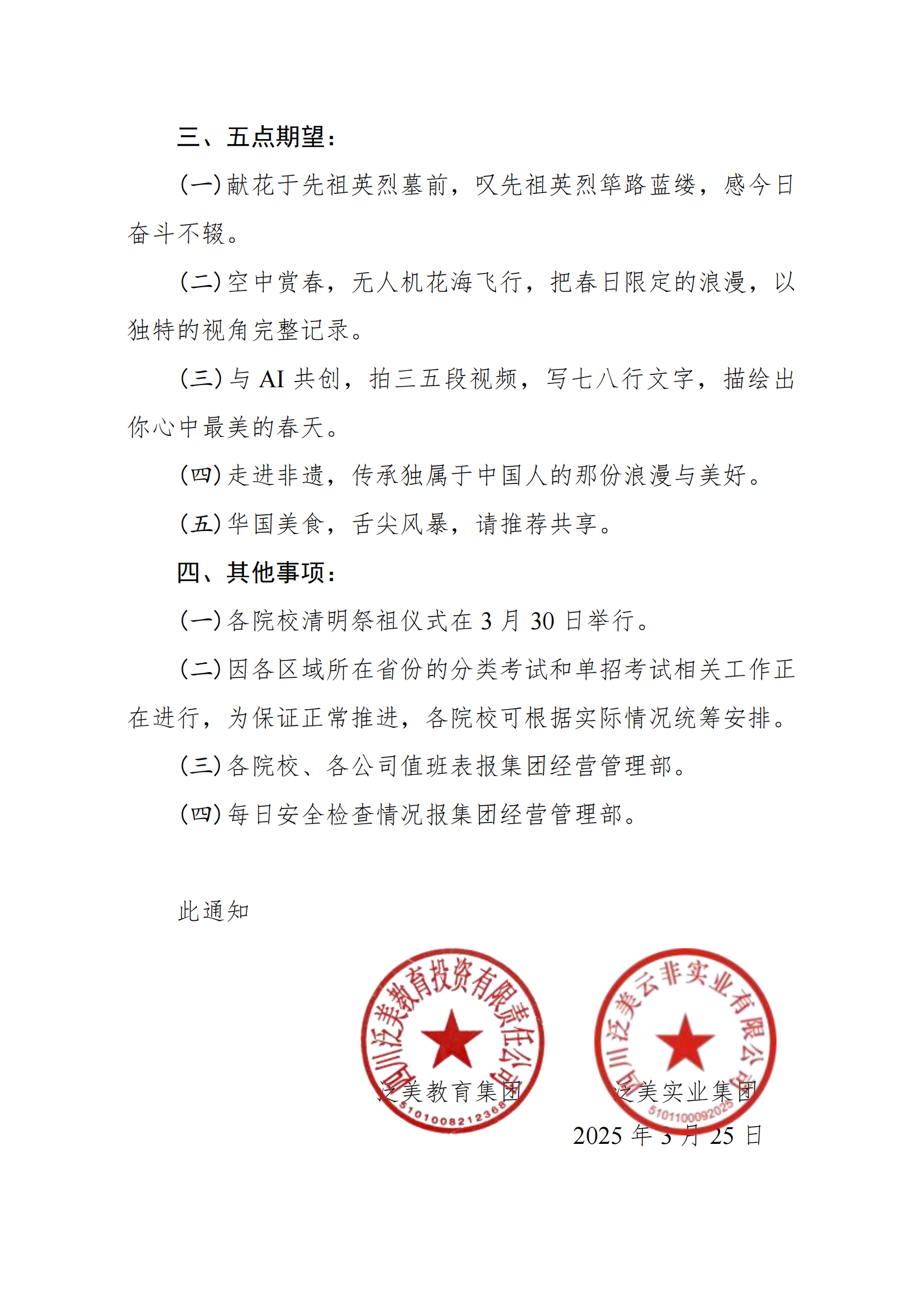 (三)各院校、各公司值班表报集团经营管理部。