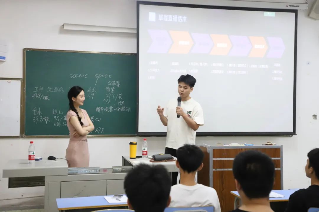 课堂上,导师们凭借深厚的知识储备和丰富的行业经验,结合实际案例,系统地对带货主播必备的能力素质、主播形象打造技巧、不同场景的互动话术、带货推进的具体流程及方法等基础理论进行全面讲解。
