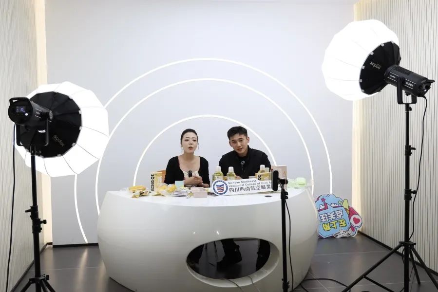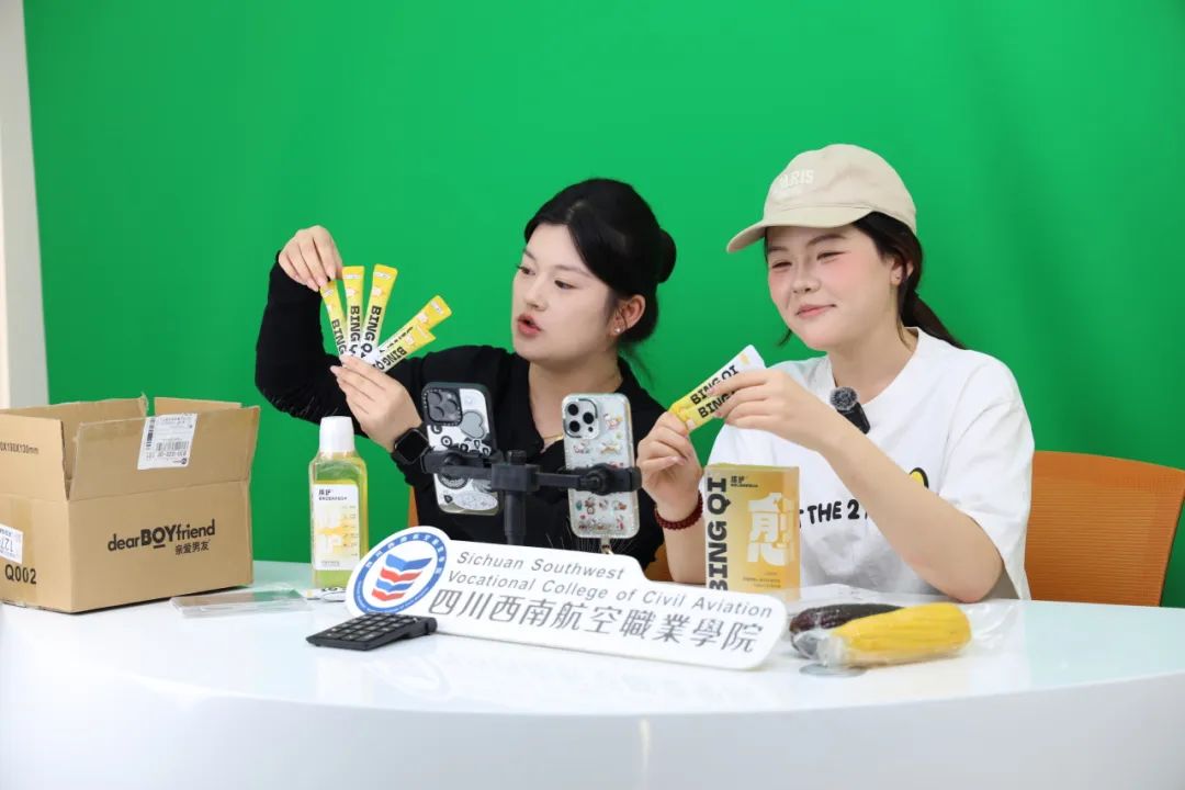 灯光亮起,镜头开启!“3、2、1,上链接!”四川西南航空职业学院新电商直播间内,身着西航制服的主播学子正以专业话术精准引流,身后中控团队以秒级响应操控后台——这不是商业直播间,而是西航新电商带货直播训练营的毕业考核现场。
