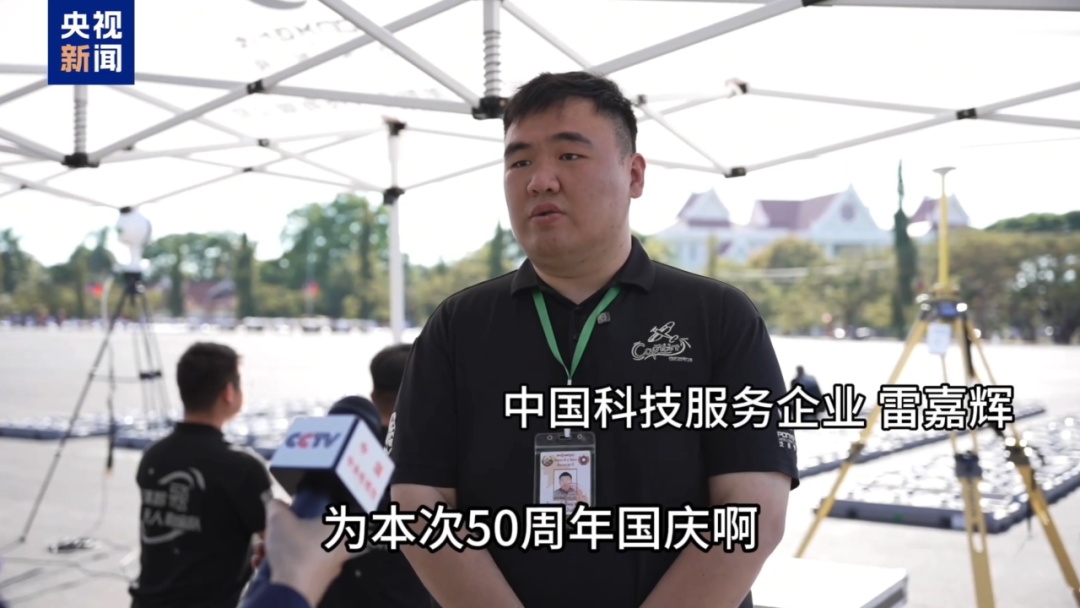 泛美智飞团队严谨专业的筹备工作,在彩排期间已吸引包括中国中央广播电视总台在内的多家媒体关注。公司总经理雷嘉辉在接受采访时表示:“我们很荣幸受老挝政府邀请,以6000架无人机表演展现老挝50年发展的峥嵘岁月。”