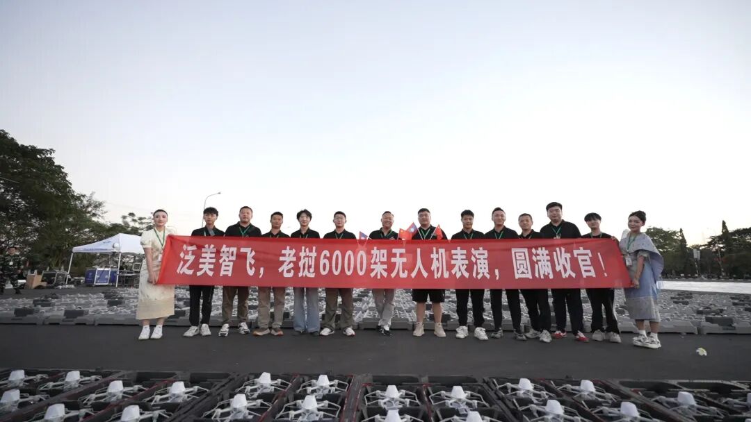 面对6000架无人机跨国调度、全新空域适应、以及与焰火表演分秒级协同的极限要求,泛美智飞团队依托在国内超大型活动及破纪录编队中积累的成熟经验,攻克了集群控制、通信抗扰等多重技术难题。通过前期多轮全流程彩排与预案反复打磨,确保了表演的万无一失。